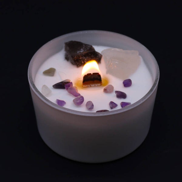 Light this candle to create an atmosphere of spiritual connection and enlightenment. Allow the rejuvenating fragrance of "Ocean Breeze" to elevate your spiritual awareness, while the energy of Celestite and Selenite crystals deepens your connection to higher realms.