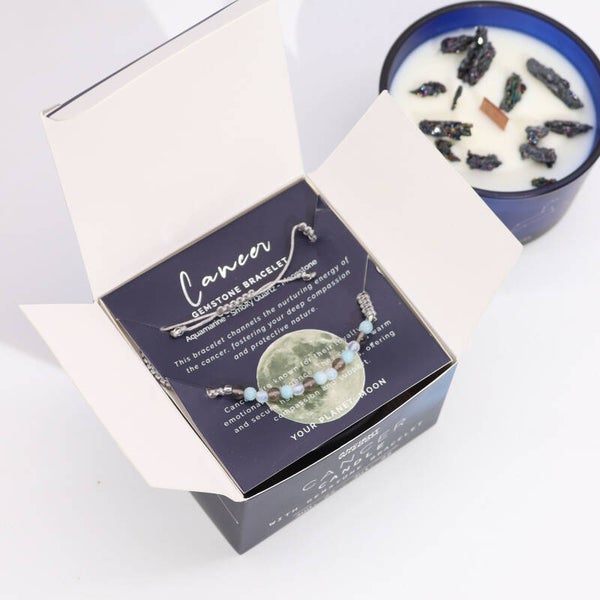 This gentle and healing combination of candle and bracelet is perfect for self-care, meditation, or as a thoughtful gift for a Cancer.