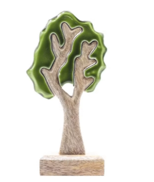 Charming, unique, and full of personality — this handcrafted tree ornament showcases the beauty of nature. Made from sustainable mango wood and accented with glossy green enamel, its layered 3D design adds a delightful touch to any nature-inspired decor or seasonal display.
